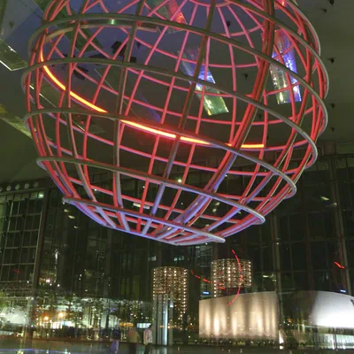 Ingo Günthers zweiteilige Arbeit „Exosphäre“ und „World Processor – Globenfeld“ befindet sich auf der Piazza im Konzernforum der Autostadt und begrüßt Sie bereits vor dem Betreten des Themenparks.