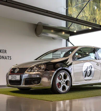 The Golf V GTI “Gumball 3000” is a true one-off that brought the GTI legend to the streets in a unique way. Initiated by Volkswagen’s marketing team, London-based designers Mark Eley and Wakako Kishimoto, and British VW tuner Jason McLean, the GTI “Gumball” was custom-built for the lifestyle rally “Gumball 3000.” The car participated in the 2005 rally, which ran from London through several European capitals to Monte Carlo. The GTI “Gumball” features a 1,984 cm³ inline four-cylinder engine and reaches a top speed of 250 km/h with its 172 kW (240 hp).