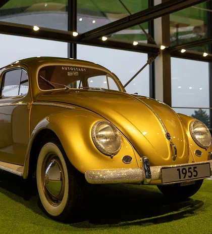 Der Käfer war so erschwinglich und zuverlässig, dass sich praktisch jede Familie einen leisten konnte. Er wurde zwischen 1945 und 2003 gebaut – insgesamt 21.529.464 Stück. Das serienmäßige Modell 1200 Export von 1955 verfügte über einen Vierzylinder-Boxer-Motor und erreichte eine Höchstgeschwindigkeit von 110 Kilometern pro Stunde. Der damalige Neupreis betrug 4.600 DM.