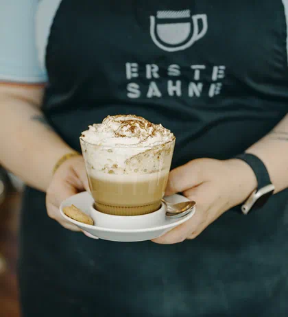 Beans roasted in-house, delicious cakes, and savoury snacks. If you love coffee, you’ll be sure to come to Erste Sahne again and again. Erste Sahne serves trend coffees from all over the world in a cosy atmosphere.