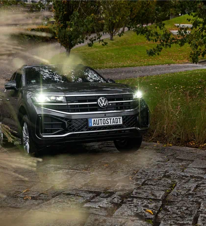 Testen Sie auf dem Geländeparcours die dritte Generation des Volkswagen Touareg. Besonders markant sind die HD-Matrixscheinwerfer in der Front und die als Lichtleiste konzipierten LED-Rückleuchten.