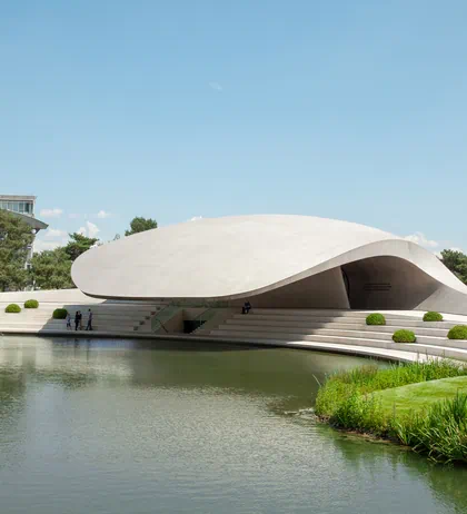 In einer einzigartigen Kombination aus Funktionalität und Design erleben Sie im Porsche Pavillon die Philosophie und Werte der traditionsreichen Sportwagenmarke. Von außen erkennen Sie den Pavillon an seiner geschwungenen Dachkonstruktion, die weit über die Wasserfläche der Lagune ragt. Sowohl die Oberfläche aus Edelstahl als auch die dynamische und elegante Linienführung erinnern unverkennbar an Automobile aus dem Hause Porsche.