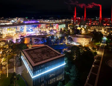 Anhand des Markenlogos an der Fassade erkennen Sie den Volkswagen Pavillon bereits von außen. Innen prägen spannende Beleuchtungselemente und eine natürliche Bildsprache das Brand Design. Neben aktuellen Entwicklungen von Volkswagen zeigen wir Ihnen im Pavillon aktuelle Fahrzeugmodelle.