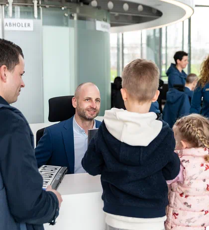 Herzlich willkommen! Der Welcome Desk auf der Piazza ist Ihre erste Anlaufstelle, wenn Sie die Autostadt besuchen. Hier beantworten wir Ihre Fragen und unterstützen Sie bei Buchungen aller Art. Zudem können Sie am Welcome Desk Eintrittskarten sowie Tickets für die Turmfahrt, Fahrten auf unseren Geländeparcours oder unserem Sicherheitsparcours sowie Führungen und Veranstaltungen kaufen.