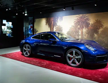 Verschiedene Motive zum Porsche 911 prägen den Eingangsbereich